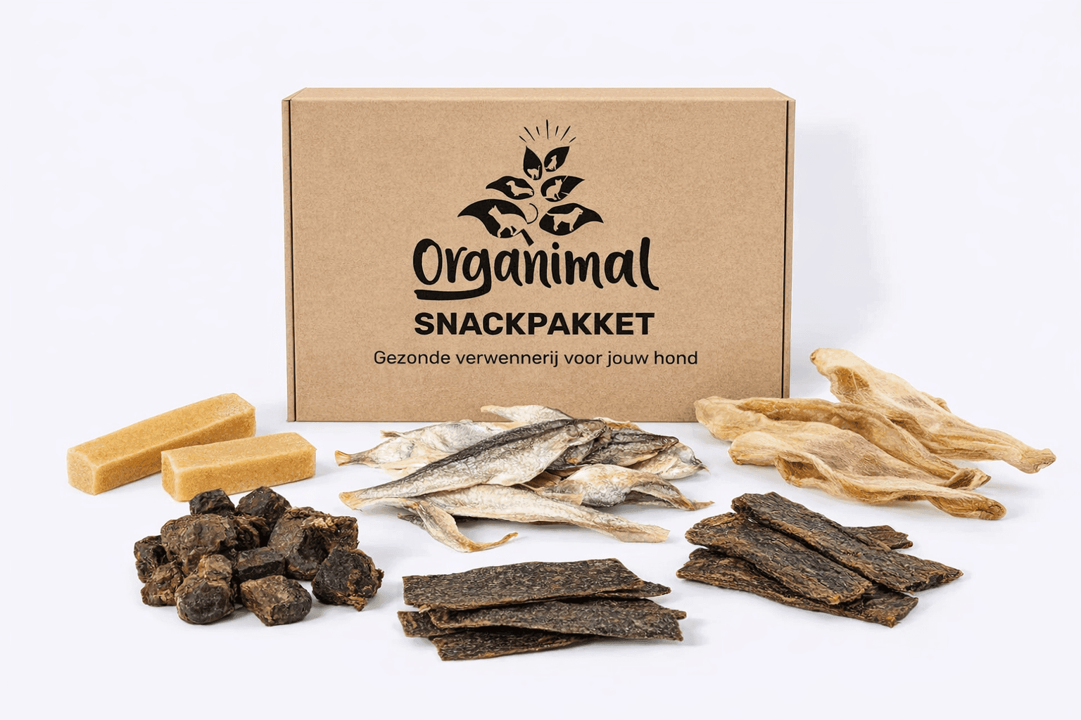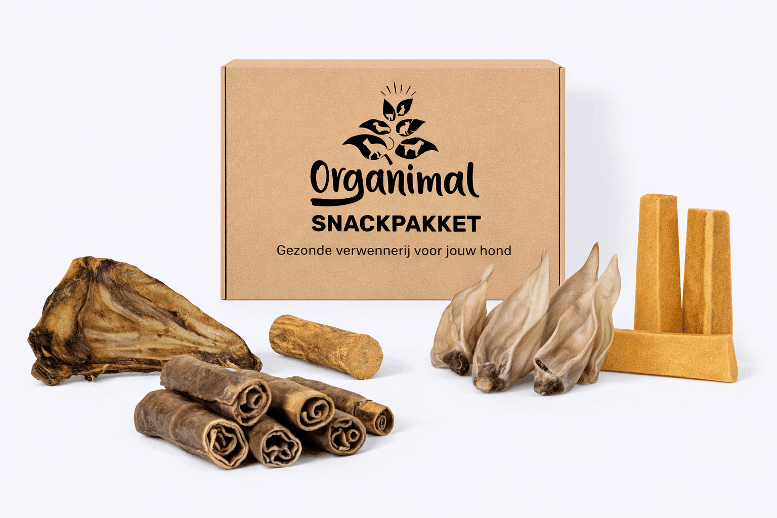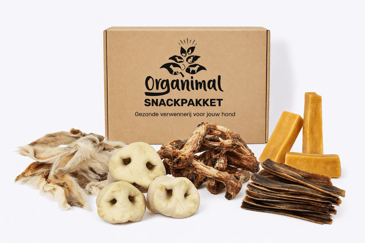 Het Organimal Hypoallergeen Kauwpakket is speciaal ontwikkeld voor honden die gevoelig zijn voor veelvoorkomende dierlijke eiwitten. Dit zorgvuldig samengestelde pakket bevat uitsluitend hypoallergene kauwsnacks van diersoorten zoals paard, konijn, kameel, hert en yak. Vrij van rund, kip, granen en kunstmatige toevoegingen. Net als het standaard kauwpakket is ook dit pakket afgestemd op de kauwkracht van jouw hond: van zachtere kauwsnacks voor kleinere honden tot stevige kauwsnacks voor sterke kauwers. Voor iedere hond is er een passende variant. Zo kan iedere hond genieten van veilig en gevarieerd kauwplezier. Het pakket zit vol gezonde hypoallergene traktaties die ook nog eens bijdragen aan een sterk gebit, een rustgevend kauwmoment en het vervullen van de natuurlijke kauwbehoefte. Kauwen maakt jouw hond zichtbaar meer ontspannen en vrolijk. Een betrouwbare keuze voor honden die extra gevoelig zijn, zonder concessies te doen aan smaak en plezier. Zonder kunstmatige toevoegingen, geur- of kleurstoffen – puur natuur. Een smaakvol pakket dat jouw hond steeds weer met kwispelend enthousiasme zal begroeten.