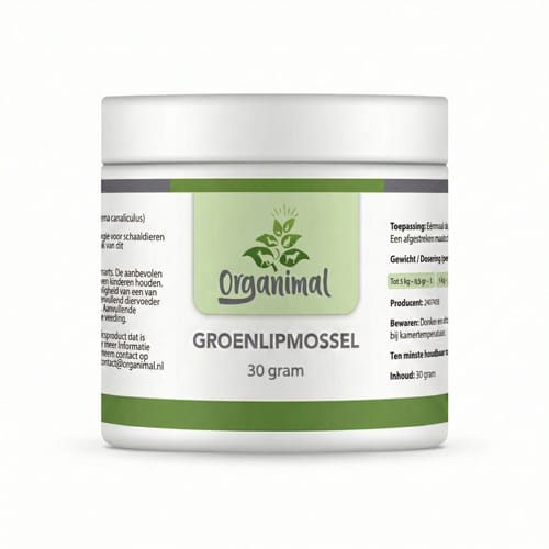 Organimal Groenlipmossel is een voedingssupplement en moet dus worden gebruikt als aanvullend diervoeder.